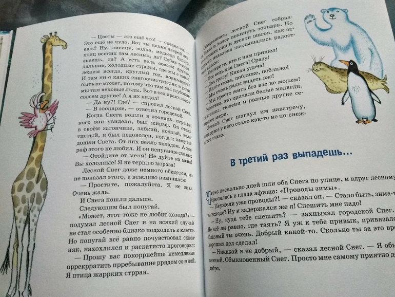 Я прочла пару очень добрых хвалебных отзывов (Таня, спасибо!) и решила, что книга мне нужна, несмотря на предупреждения, что кому-то она может показаться устаревшей. И прочла ее быстро с совершенно неожиданным удовольствием, забыв про "внутреннего эксперта", просто так, для себя. И это для меня самый главный маркер качества - когда слепнет, глохнет и дохнет эксперт-зануда и остается просто Читатель, которому книгу интересно дочитать. Забавный, хотя и несложный, знакомый некоторыми деталями, сюжет, хороший язык, интересная история встречи белого и пушистого, доброго и самоотверженного лесного Снега с измятым и истоптанным, грязным и истерично-эгоистичным городским Снегом.