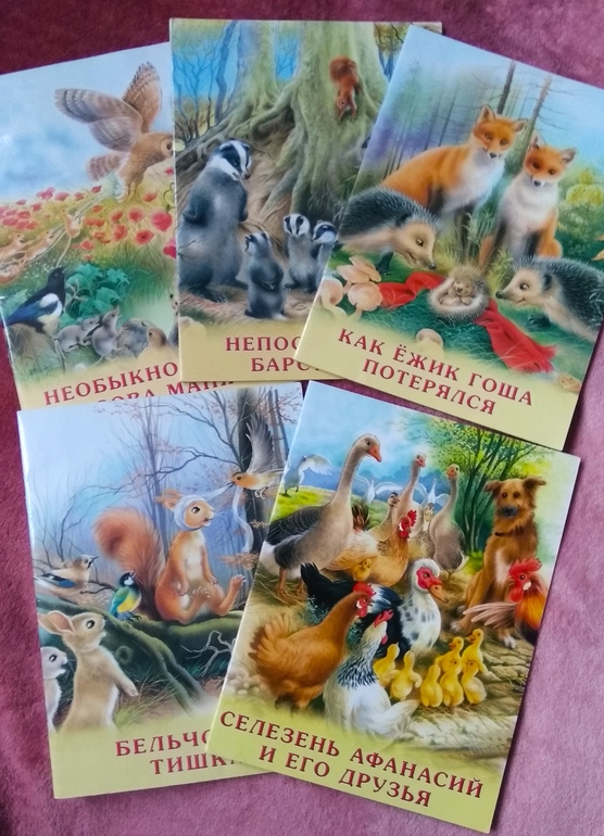 И ещё вот такая серия! Простые истории о животных, но добрые и есть немного поучительного. Как барсучат воспитывали, как ежонка искали. Люблю эти иллюстрации.