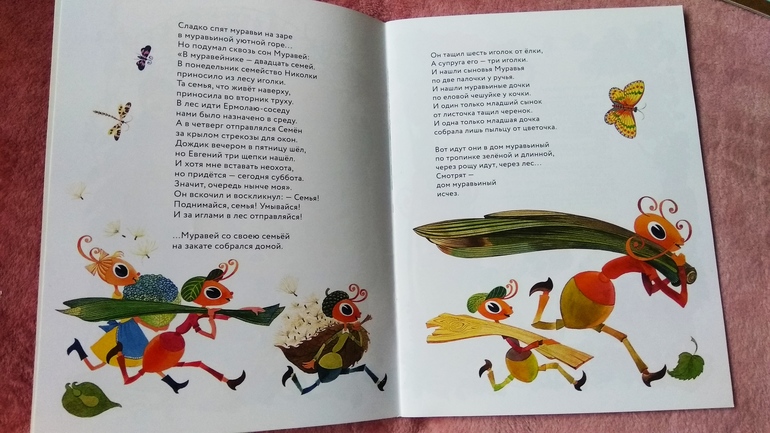 Любим сказку про грибы, про дятла. Не знала, что они кушают муравьев.