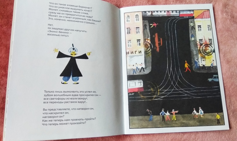 Сказка о светофоре. Жил был колдун и решил он поколдовать из вредности конечно. И убрал все светофоры! А без них как ездить и переходить дорогу, автор рассказал как они появились. И все в стихах. После нее, Тёма долго показывал на светофор и говорил можно ехать или нет. Иногда и сейчас так играем)