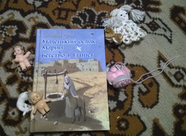 Г.Селин. . Читали совсем недавно, в декабре. История про рождение и детство Иисуса, про Марию и Иосифа и их маленького ослика. У нас не религиозная семья. Но все же для меня важно, чтоб дети знали эту историю. Это же основы нашей культуры. А книга хороша. Очень-очень добрая. Год назад я сама с удовольствием её прочитала, и я рада, что детям понравилось. Не помешало и то, что почти нет иллюстраций. Тася после чтения была Марией, Юрик - осликом, который возил Марию на себе. Только вот Тема отказался участвовать и быть Иосифом...