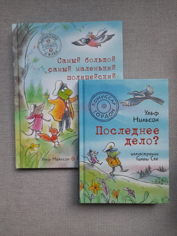 Последнее дело очень понравилось, тоже большую часть Маша читала сама (у нее вообще в последнее время значительно подросла скорость чтения). В этой книге в лесу царит мрачное настроение, потому что кто-то из лесных обитателей дразнит остальных. Жаби с блеском расследует это дело, а Гордон решает отправиться в длительный отпуск, но не исключает возможности, что еще вернется к работе.