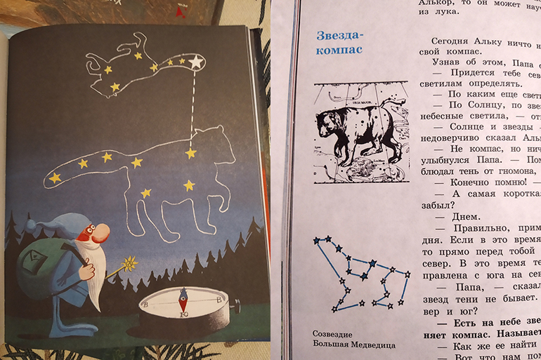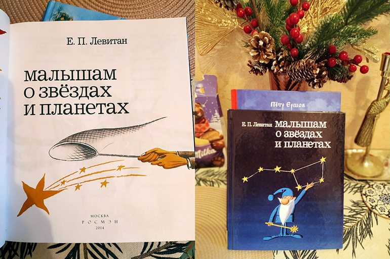 Интерес к космосу возник из-за садика. К ним в группу часто приезжал Планетарий. Не вполне понимаю как в спектакле им показывали устройство Вселенной, какой-то купол, но детей это увлекло, учили потом стихи и взахлеб рассказывали родителям, задавали вопросы. А мне пришлось срочно искать книжку. 3-х томник Левитана есть, но он не особо вызвал интерес, может и рано, я не знаю. На всякий пожарный дома лежит. Разыскала букинистику, как раз на дошкольный возраст. Опять же это моя любимая книга из детства, которая полюбилась и всей семье, не только дочке. Сама книга написана Левитаном еще в Советские времена, но переиздание РОСМЭНа с добавлениями, чтобы информация о космосе была актуальной в современном мире. Например, как с 9-й планетой.