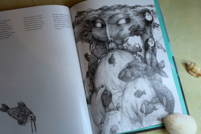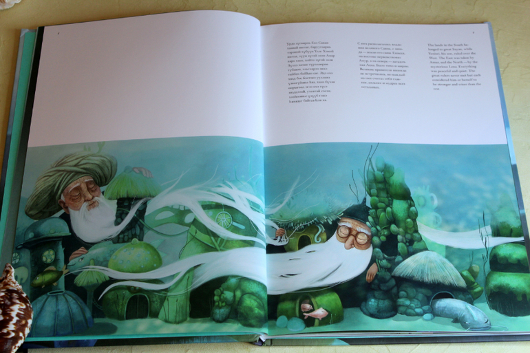 Кстати, текст в книге на трех языках: бурятском, русском и английском. Бумага мелованная, на ней как нельзя лучше смотрятся иллюстрации. Книга безусловно подарочная, для ценителей. Тираж небольшой, всего 1000 экземпляров.