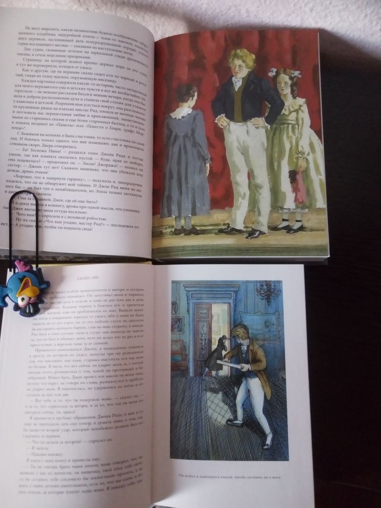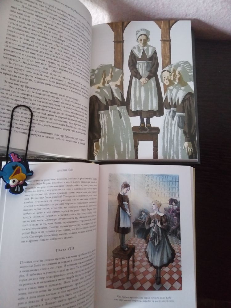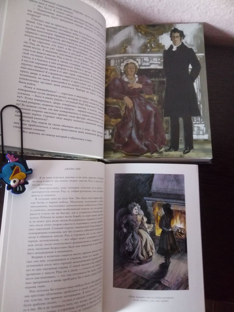 И последнее пополнение - опять издание "Речи" ઈ ઉ "Джейн Эйр" Бронте Ш.. с ил. Мельниковой Е. Очень атмосферная иллюстрация выбрана для обложки, она-то и привлекла мое внимание. Перевод Гуровой И. Сначала планировала купить дубль от "Качелей" с ил. Комраковой Е., но, присмотревшись, поняла, что иллюстрации... несуразные? Где-то детские лица просто неприглядные, где-то не соблюдены пропорции. Из выложенных фото всего лишь пара вполне симпатичных. К тому же перевод Станевич, а он у меня уже был от ИДМ с ил. Долгушиной О.