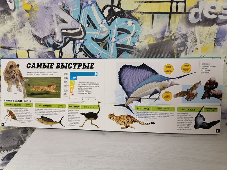 7." Чудо-животные"- необычно оформленная энциклопедия о животных, здесь собраны факты о самых больших, самые быстрых, самых опасных животных нашей планеты. Нравится, нестандартная классификация животных, наличие окошек, подвижных элементов. Также можно узнать, что внутри животного или, например, заглянуть в пасть гиппопотаму.