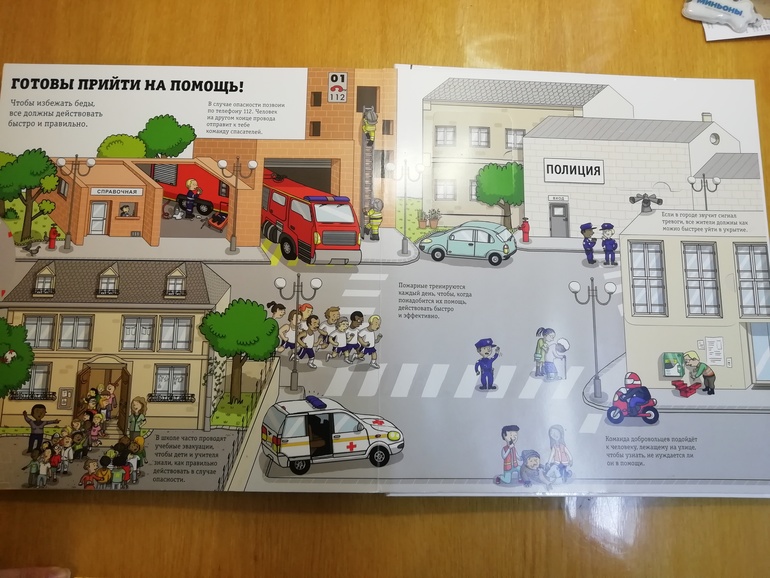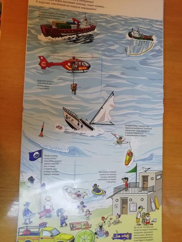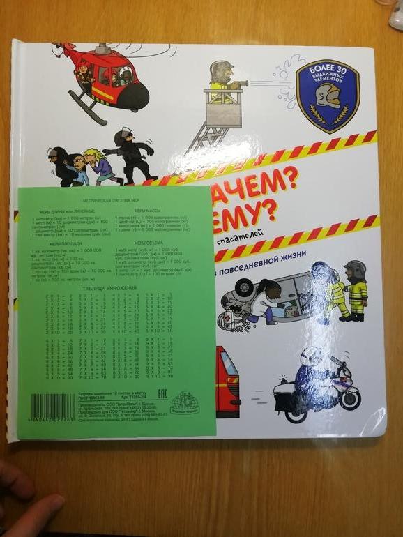 5. Что? Зачем? Почему? Энциклопедия спасателей. Единственная книга из наших запасов. На протяжении уже двух лет сын к ней возвращается вновь и вновь. Мы её перечитали и рассмотрели вдоль и поперек, придумывали по ней истории, использовали как антураж для игры. Текста, как и движущихся элементов на такой большой размер книги откровенно мало. Качество также оставляет желать лучшего: практически сразу кое-где оторвались элементы. Но все эти недостатки перекрываются горящими глазами сына.
