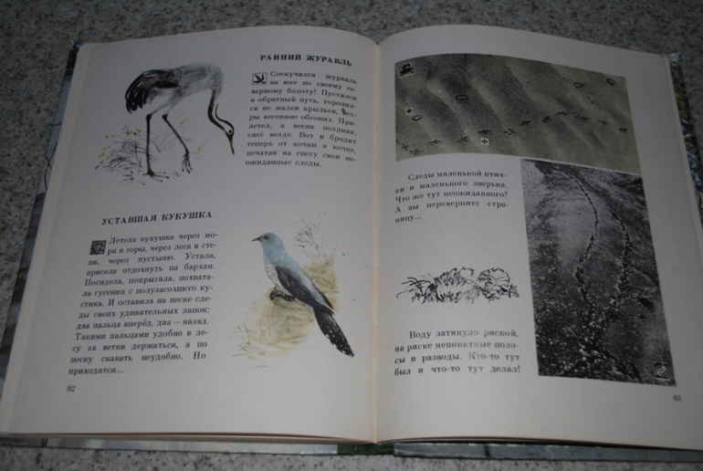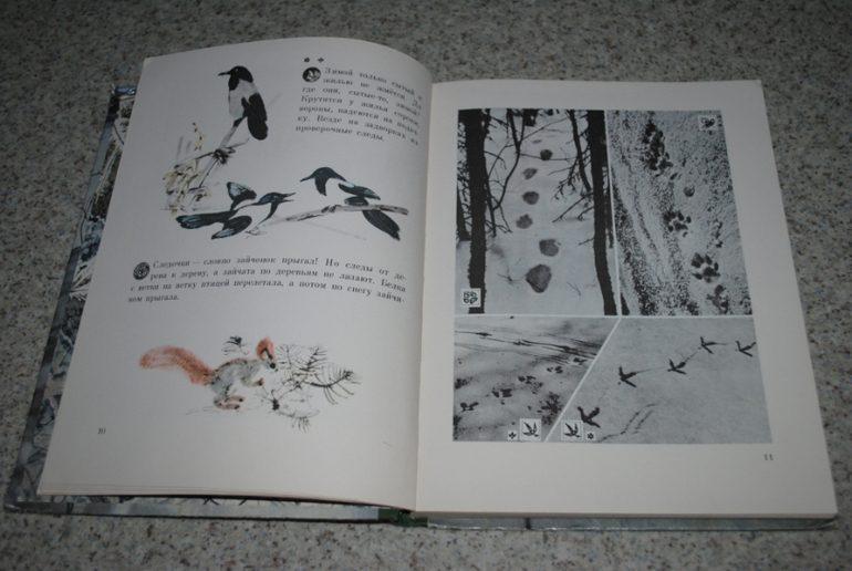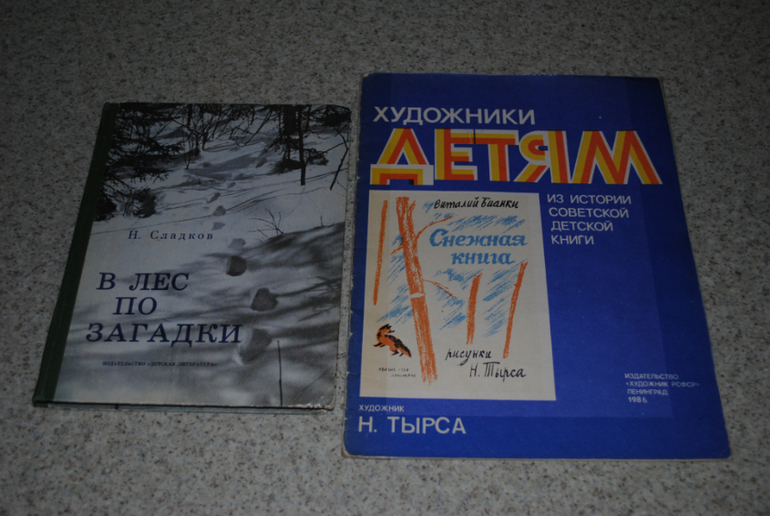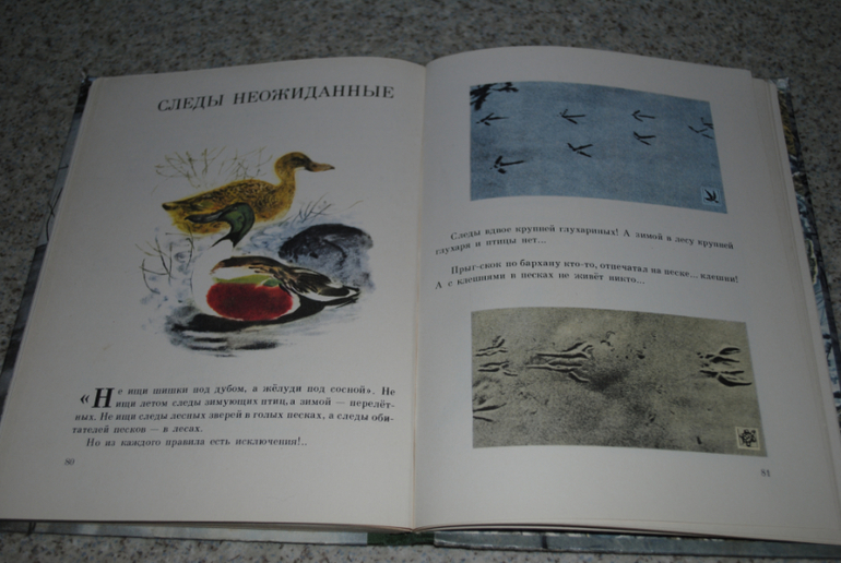 Сладков - как раз мужа книга сохранилась. Мне так понравилась! Фотографии следов на одной странице, а на другой рассказано, чьи следы и как оставлены. Можно самим попытаться отгадать. Мы и отгадывали вчетвером с детьми. Старший про уроки забывал, с нами глядел. Следы не только на снегу, на земле, в песке. Книга Бианки прочиталась продолжением, еще одной "следопытской" историей.