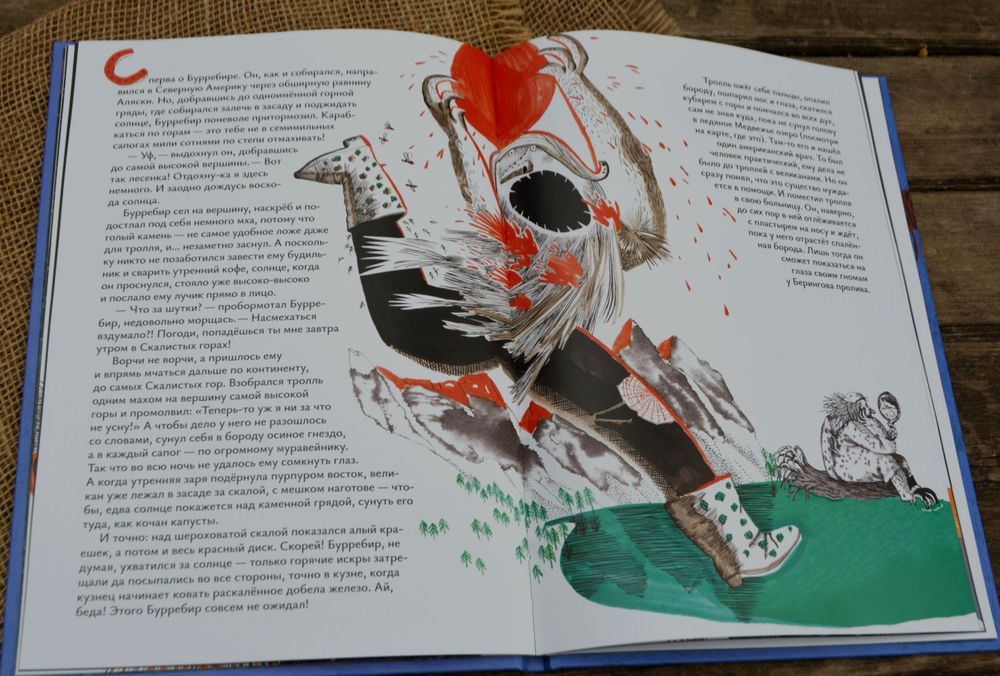 Иллюстраций тут много, на каждой странице с текстом и следом на весь разворот ещё, в общей сложности на полный разворот аж 7 иллюстраций вышло, плюс ещё 8 разворотов (где с текстом).