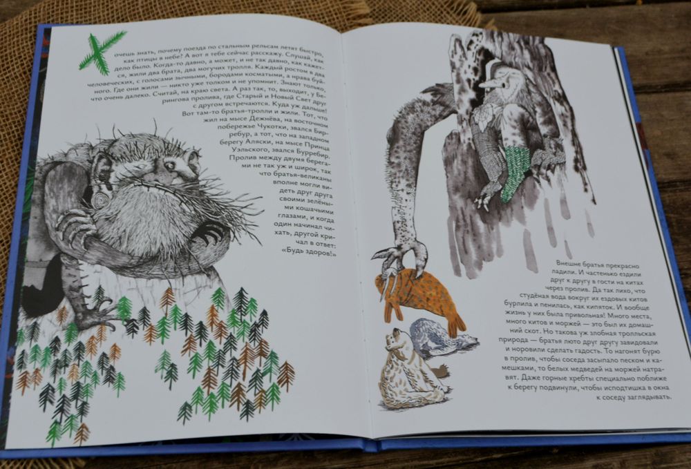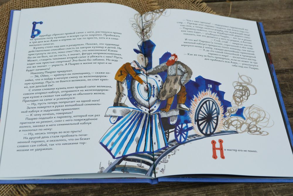 Сказка не сказать что бы особо известная (по крайне мере не такая известная как «Сампо-Лопаренок», или «Звездоглазка»), но в старых сборниках встречалась, обычно под названием «Как железной дороге достались семимильные сапоги». Пересказ там был другой, похуже, в новой мне больше понравился, более целостный.
