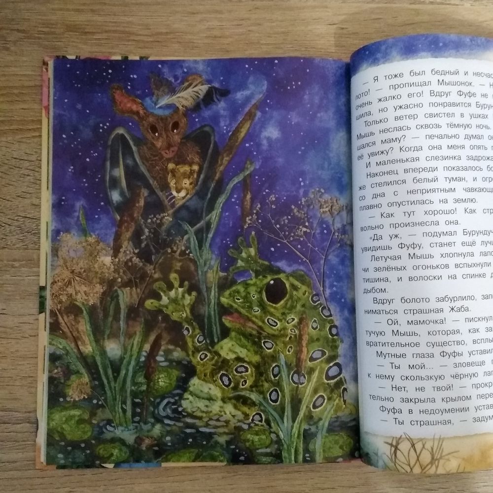 Это наша вторая книга Юдиной, летом читали ее сборник Истории с хвостиком. В данной книге одна большая История про мышонка, бурундука и гусеничку, как они попали на болото в логово жабы Фуфы и уменьшились в размерах. Их приключения и попытки вернуться домой. История понравилась, прочитали за пару вечеров. Но иллюстрации мне показались тяжелее, темнее как-то, чем в сборнике Историй. Хотя и настроение текста соответсвует таким иллюстрациям. На любителя наверное. Кстати, очень понравились стихи гусенички.