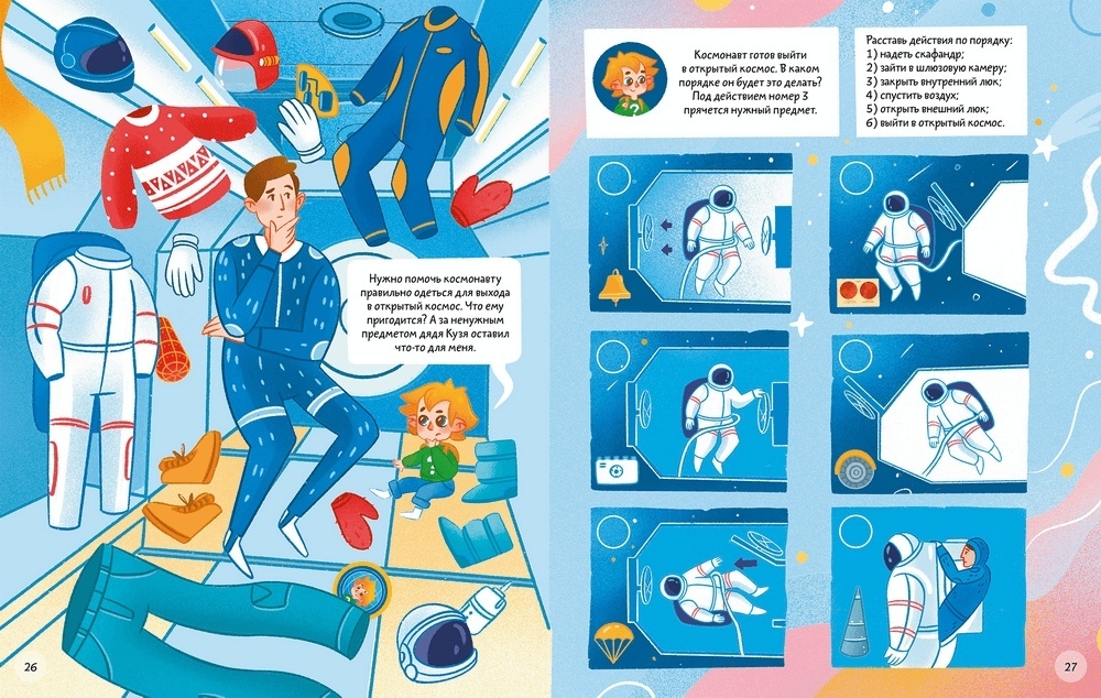 - Высокий уровень детализации в иллюстрациях. Читатели смогут рассмотреть устройство Международной космической станции и космодрома Байконур.