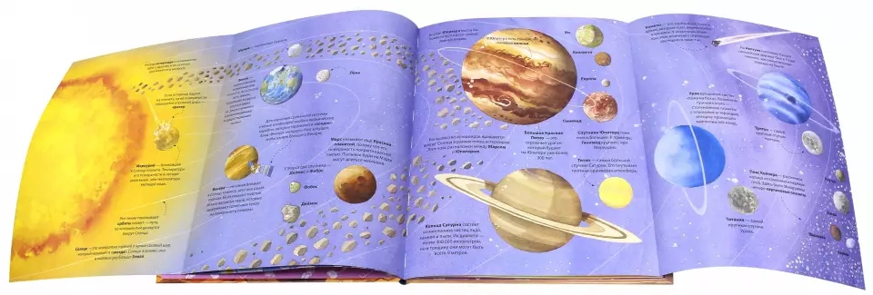 Замечательная серия «Энциклопедия для малышей » состоит из 5 книг, которые помогут ребенку в исследовании окружающего мира. На огромных раскладных страницах «Большой книги о космосе» дети узнают, сколько планет в Солнечной системе, что такое астероиды, какая планета вращается «лёжа на боку», где находится Большое Красное Пятно, а также познакомятся с мощными ракетами, космическими кораблями и телескопами, помогающими нам познавать космос. Познавательные тексты, невероятные факты, яркие рисунки ждут юных исследователей.