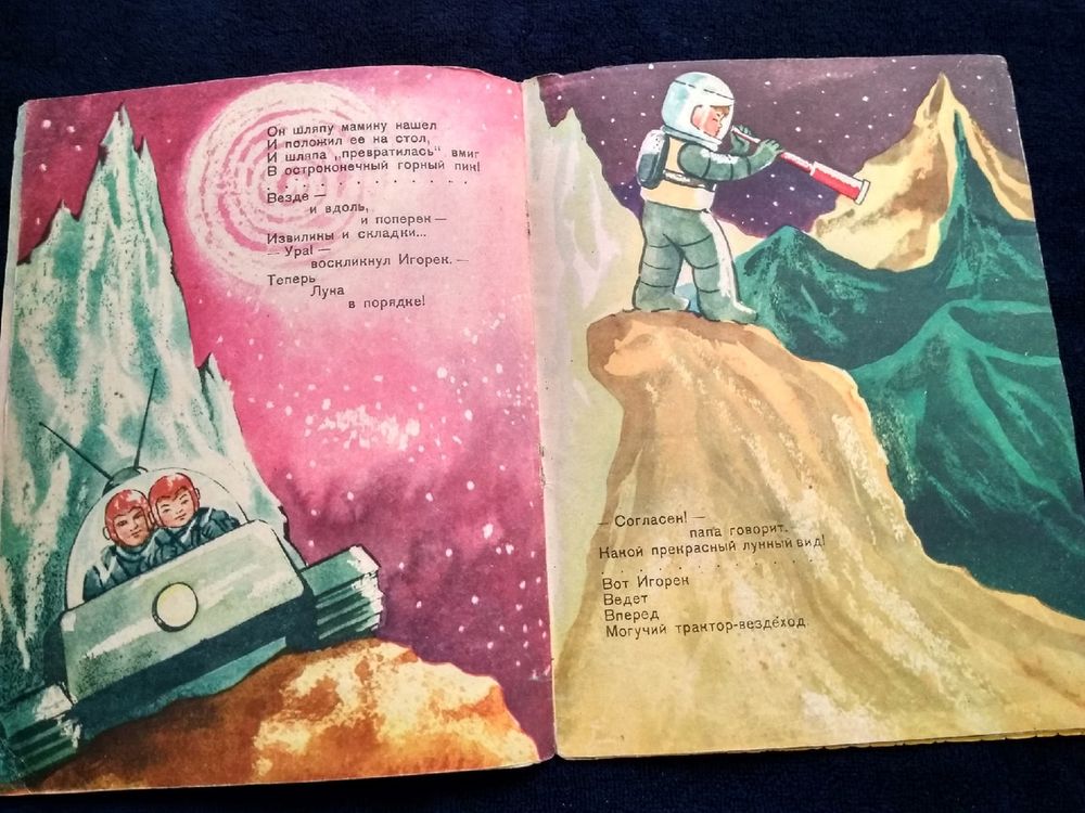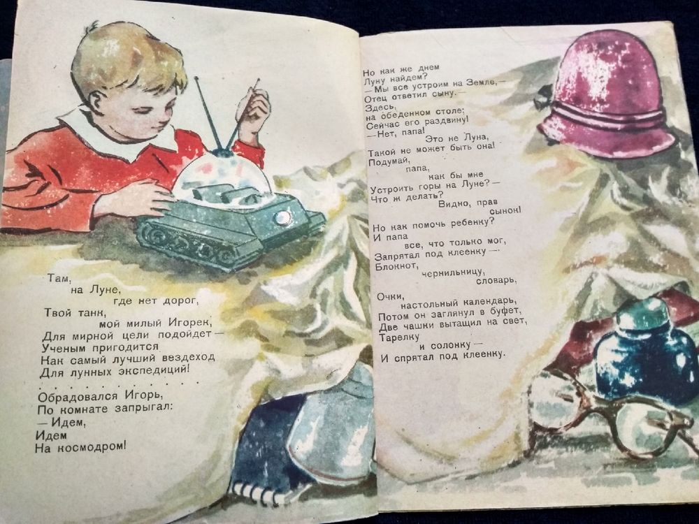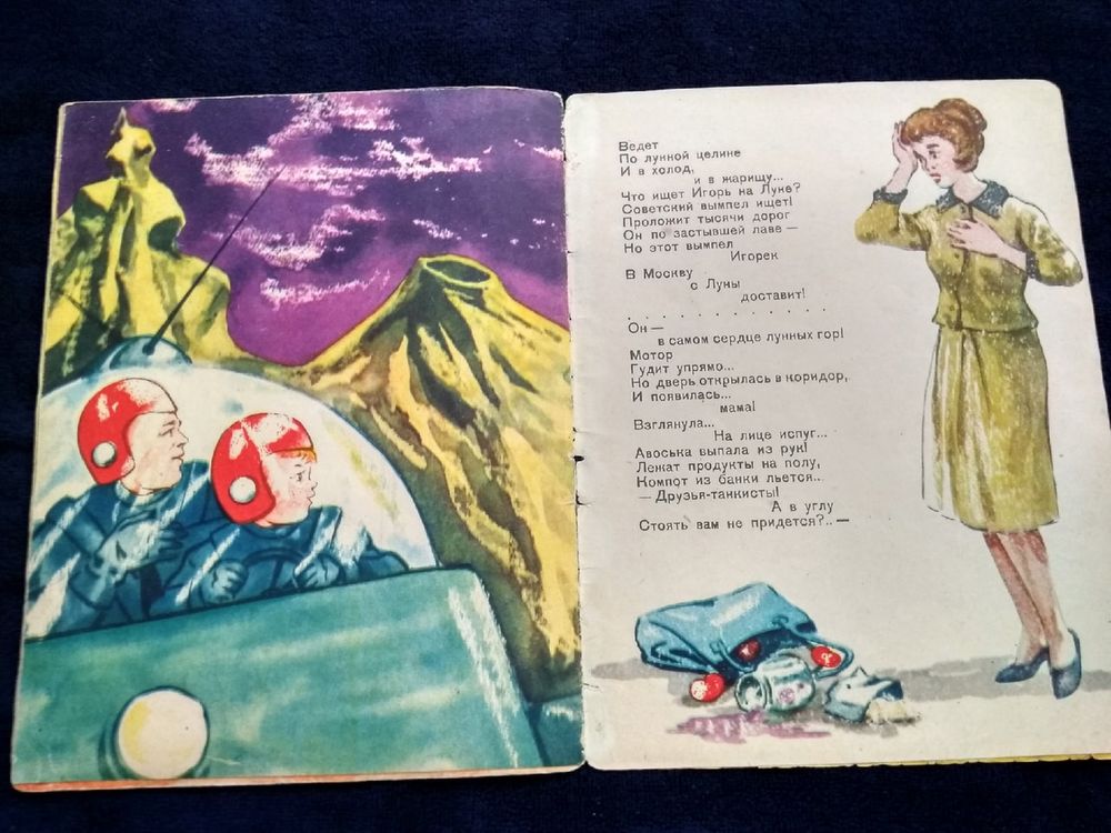 И совсем-совсем старенькая книжка 1962 года издания - история в стихах Бориса Миротворцева "Игорек на Луне". Сфотографировала полностью.