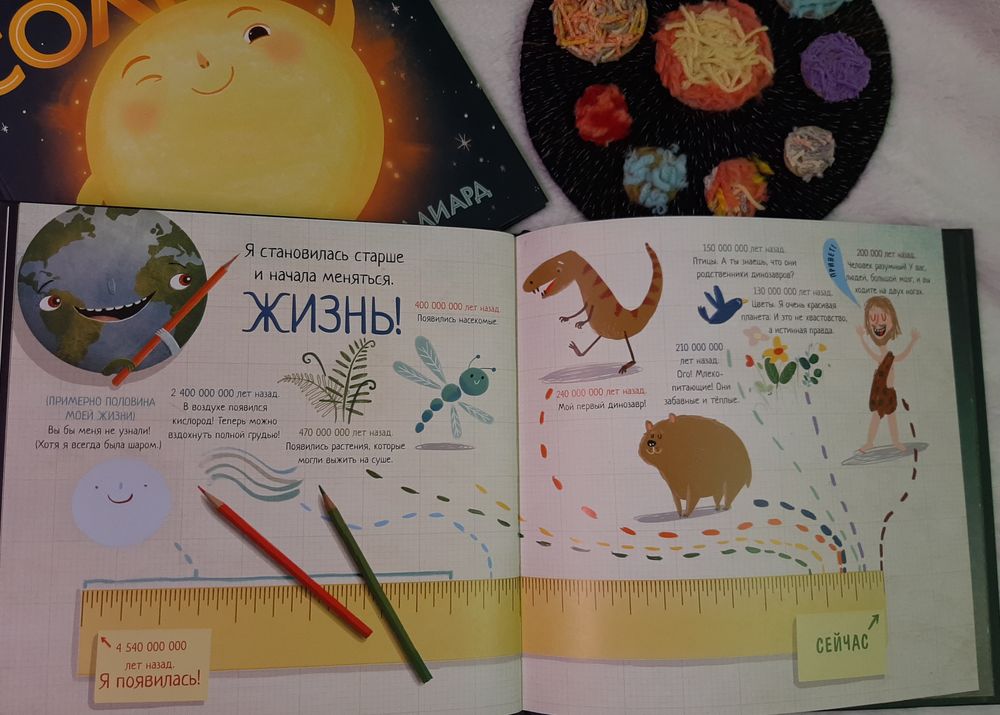 Книги ответят на вопрос А как все начиналось? Кратко, доступно и в совершенно очаровательных, выразительных и забавных рисунках! Земля- тренер и Земля с соской меня покорила)