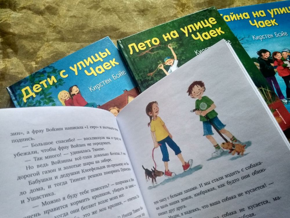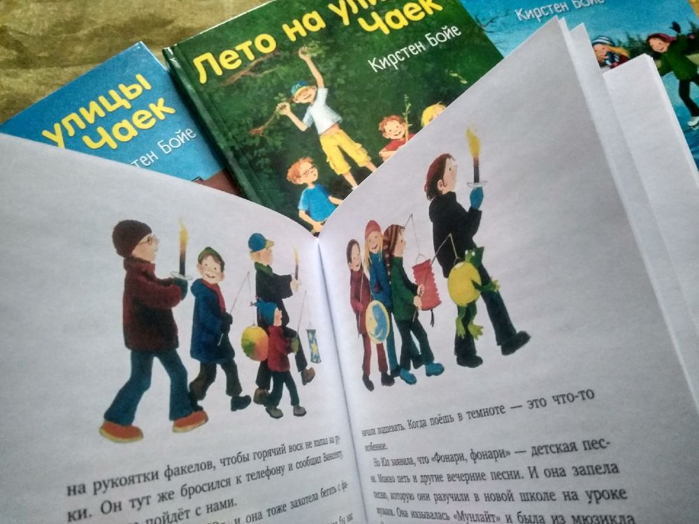 Но все это, так многословно описывающее мою неудовлетворенность, справедливо лишь при сравнении повестей с классическими высокими образцами жанра - Вестли, Линдгрен, Нестлингер, Парр, Воронковой, Могилевской, Носовым и Драгунским. Ну да, да... планка задрана высоко, мне хочется шедевров! Все больше и больше! Но если сказать себе: "А мордой об асфальт?", то окажется, что это хорошая серия для расчитки - ровное, хорошо выстроенное и легко читающееся по главам повествование. Охвачены все стороны жизни - и семья, и школа, и дружеские отношения, и "общественная жизнь". Показаны социальные горизонтальные и вертикальные связи - дети общаются и с ровесниками и со взрослыми жителями улицы. И читалось мне гораздо интереснее Маруси-Мартины, над которой обычно хотелось тихо завыть уже на втором абзаце. И на фоне книжечек про кошечек и морских свинок, которые я даже открывать не могу, они на порядок выше. Так что для детей это хорошие базовые книги, начитываемый второй ряд, на фоне которого выстреливают внезапно чем-то поразившие, шедевральные.