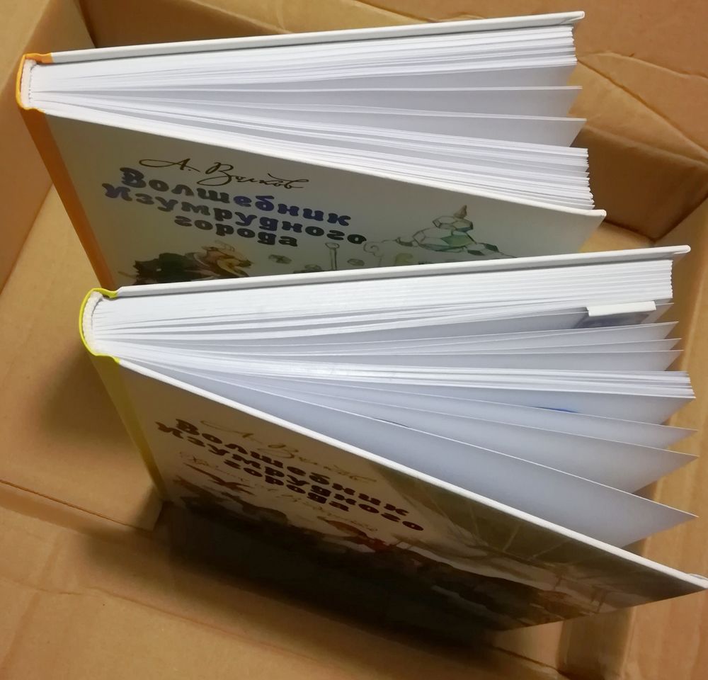 Первая книга оказалась у нас как раз с достаточно бледной печатью. Не то, чтобы нельзя было читать, но я понимала, что может быть лучше, и этого и хотела. Так что в прошлом году купила замену из нового тиража. С жёлтым корешком - . Корешок закруглённый, но это заметно только при сравнении со старой серией.