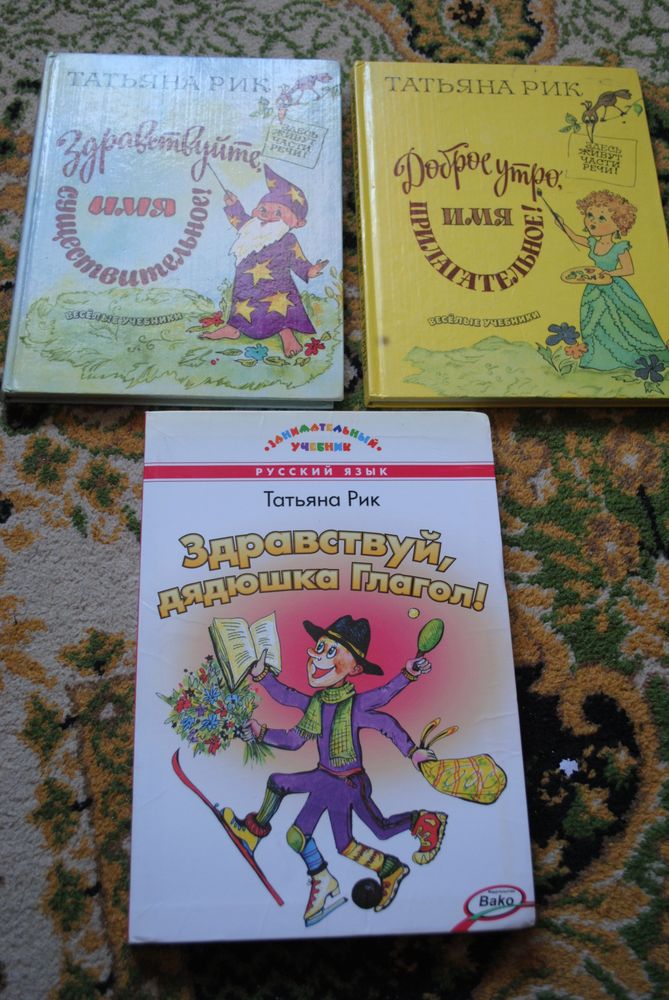 Первая книга, про Существительное (это имя) ещё моя, я её очень любила и несколько раз перечитывала, хотя никогда не выполняла предложенные задания. И Тёма не выполнял. Более того, многое, уже известное ему, я пропускала. Все книги построены как путешествие феи - учительницы и 3 детей разного возраста. и даются сначала просте сведения, потом младшего ребенка куда-то отправляют, даются сведения для учеников постарше, и потом для самых старших. В Существительном пропускали многое, в Прилагательном меньше, в Глаголе уже без пропусков читали.