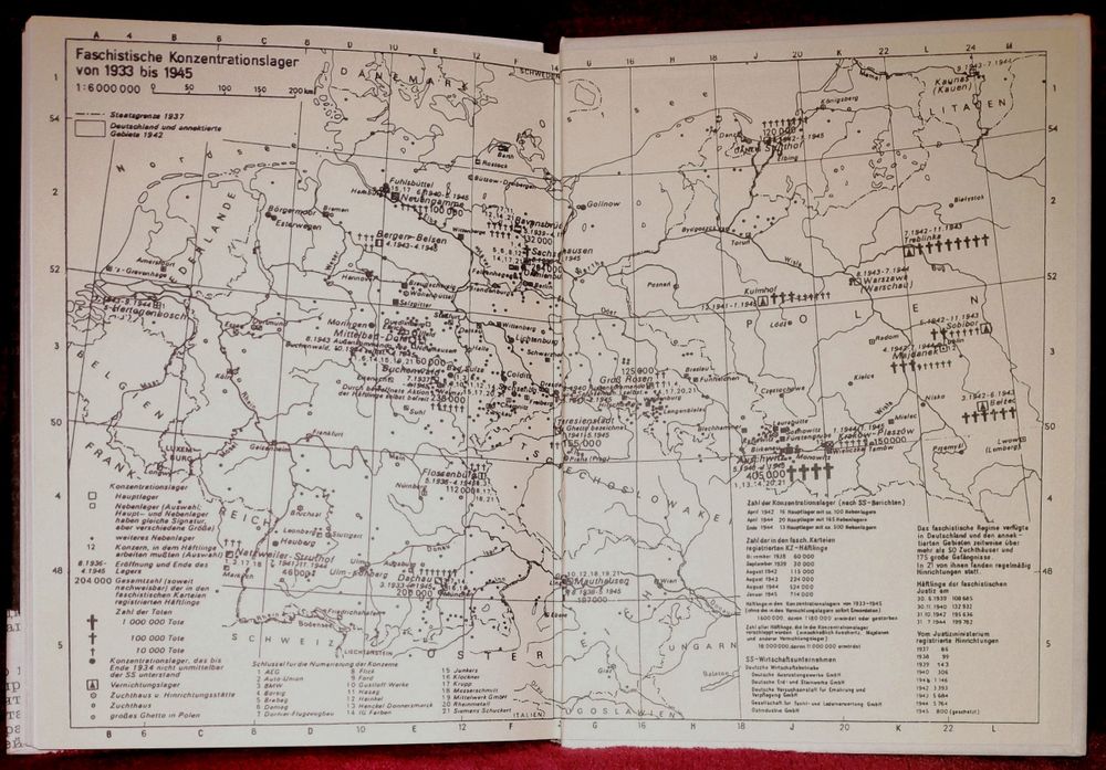 Она сразу открылась на форзаце. Карта. На немецком. Интересно, откуда она взята? Это карата концлагерей...