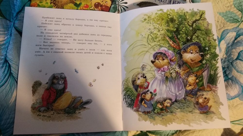 Из этих книг, все старенькие. читаем чаще именно эту сказку, про гнома редко. Заяц и ёж - ну какие классные иллюстрации. Любит очень эту сказку, ёж обманул же зайчика.