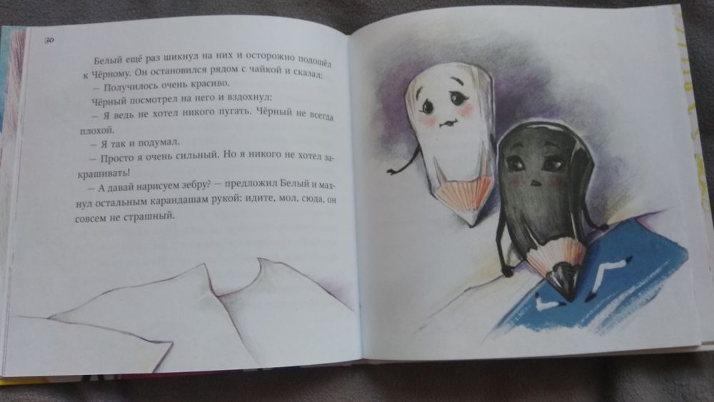 . А вот эта книга из тех, что с первого раза прошла спокойно. А потом мы ее так рассчитали. Очень добрая и интересная история, про то как появлялись новые карандаши. А ещё мы рисовали вместе с ней и это так здорово смотреть, как появляется зелёный, оранжевый, фиолетовый и другие.