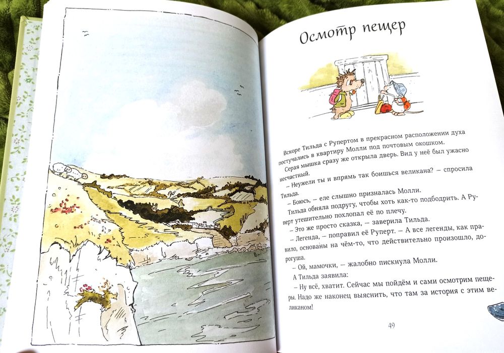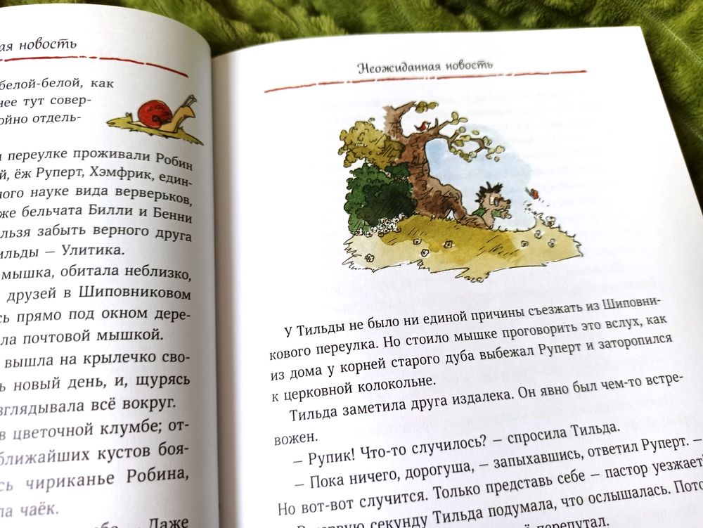 Это наша первая книга про мышку Тильду. В отзывах на другие книги читала, что история скучновата. Может так и было, но про новую книгу этого не скажешь точно. Напротив, разные события происходят даже слишком часто и многие совершенно удивительные. Тильда чуть не лишилась дома, а потом у нее «посыпалась» идея с гостиницей - это еще ничего. А вот совершенно сказочные истории про великана и подводных жителей, прогулка Тильды под водой - совсем не скучно.
