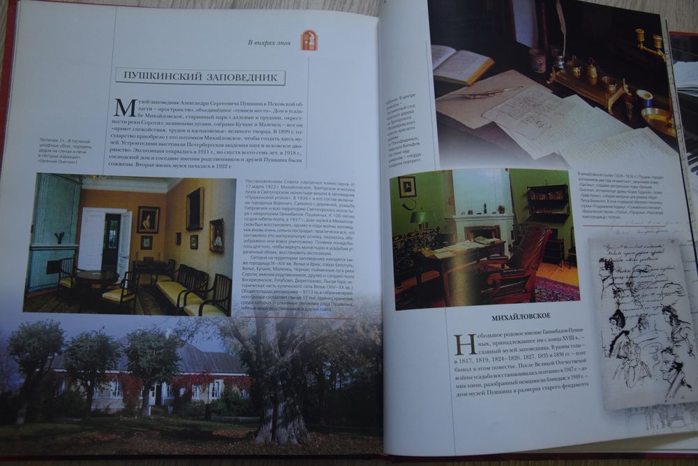 В этой же замечательной книге знакомимся ещё с одним музеем «Михайловское». Музей-заповедник Александра Сергеевича Пушкина в Псковской области -«приют спокойствия, трудов и вдохновенья».