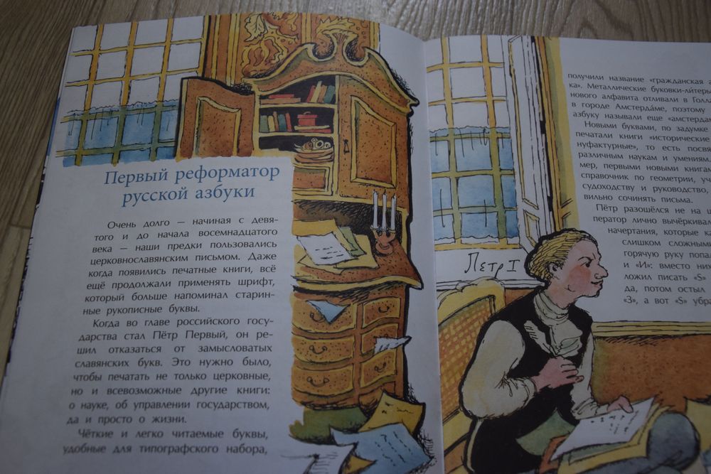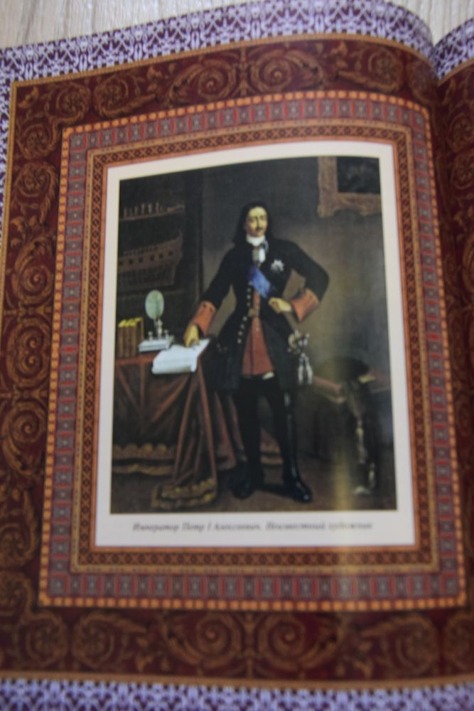 В энциклопедии «Российский царский и императорский дом» Владимира Бутромеева нашлась иллюстрация Петра I. Наблюдаем на полке в шкафу не только макет корабля, но и книги.