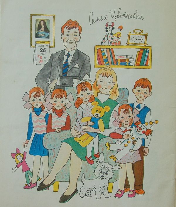Про семью Цветковых и вообще про целый 3"Б" книга Валерия Медведева "Плюс Восьмое марта" (тоненькая). Я её читала раз дцать в детстве, советую.