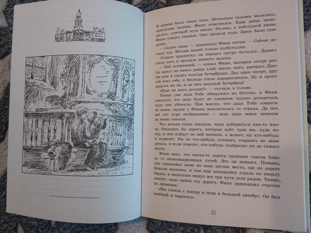 Из аннотации: "Герои повести брат и сестра Финн и Дервал остались на попечении чёрствого и жестокого опекуна. Они совершили отчаянный побег и, зная лишь приблизительное географическое направление, преодолевая голод и холод, спасаясь от алчных «дядюшек», стремящихся завладеть их наследством, добираются до единственного родного и любящего человека – своей бабушки."
