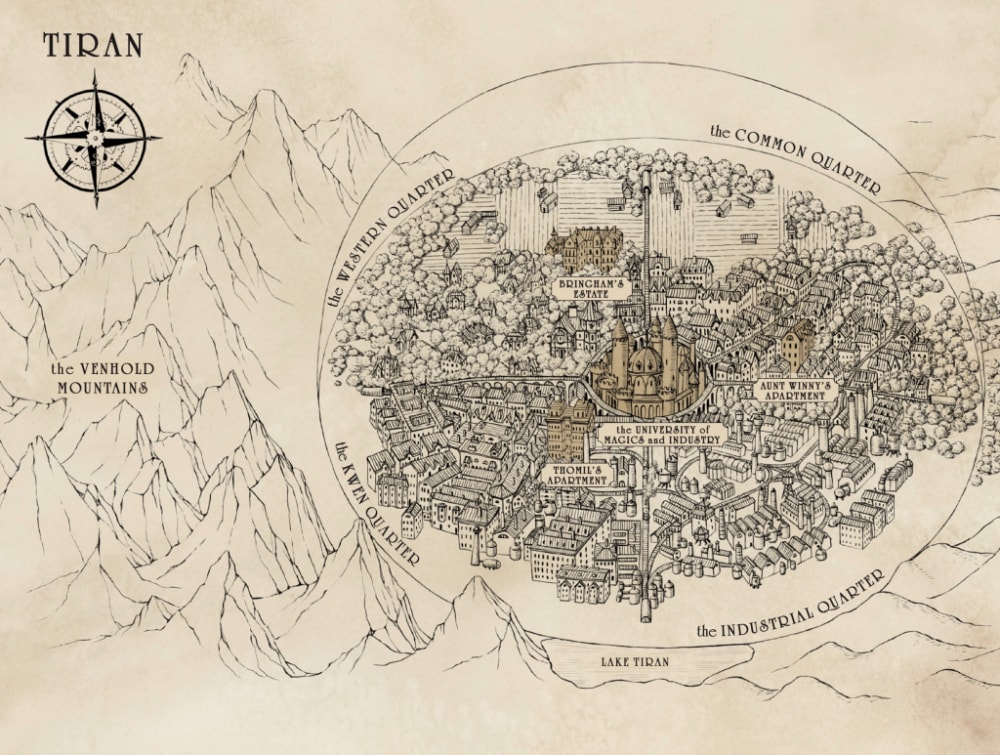 Действие романа разворачивается в городе Тиране. Тиран представляет собой мир альтернативный нашему, не имеющий отсылок к какой-то географической локации или определенной исторической эпохе. В Тиране существует магия: город имеет магический защитный купол, отделяющий его от другой части мира, и в то же время, Тирану не чужды современные технологи: там есть электричество, ходят поезда, здания оснащены лифтами, и все желающие могут поступить в магический университет.