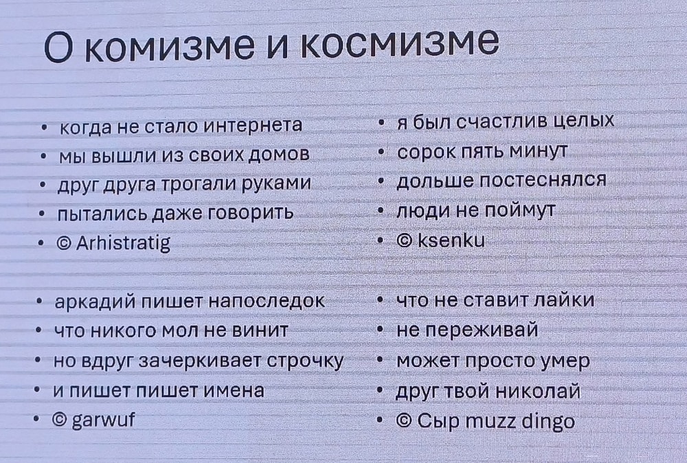 Он рассказывал о таком виде поэзии, как пирожки, порошки и подобные им штуки, давно уже, как оказалось, завоевавшие себе место в интернете. Максим Анисимович подробно изучил это явление, как настоящий лингвист, разобрал по косточкам (в смысле ритма-рифмы-строения и других языковых особенностей) и написал об этом целую книгу.