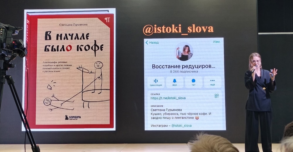 И последняя для меня лекция на этом фестивале была от лингвиста, популяризатора науки Светланы Гурьяновой и касалась заимствований в русском языке