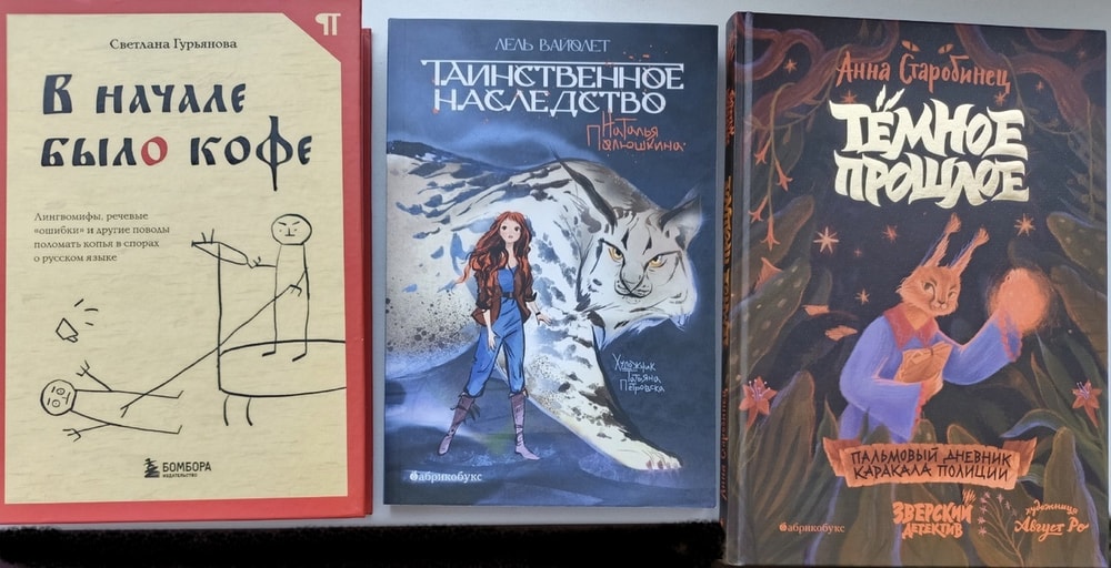 Книгу Светланы Гурьяновой не на самой ярмарке, я накануне заказала ее на маркетплейсе и уже половину заглотила. Последняя часть "Зверского детектива" стоила дешевле, чем в интернет-магазинах, к тому же, представитель издательства намекнула, что по нашим временам Старобинец надо брать, неизвестно, кого могут завтра запретить. Ну и о первой книге трилогии Полюшкиной я писала выше.