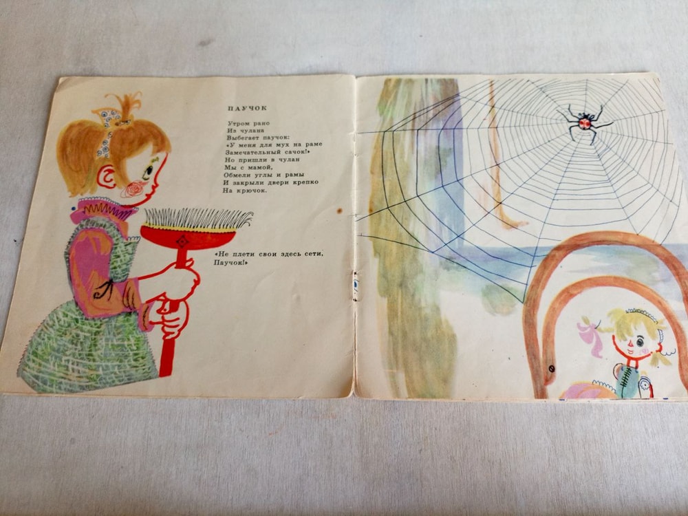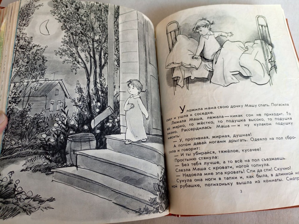 "Как Маша поссорилась с подушкой" - с шёлковыми листочками, с серыми, а вовсе не синими, как в переиздании, рисунками