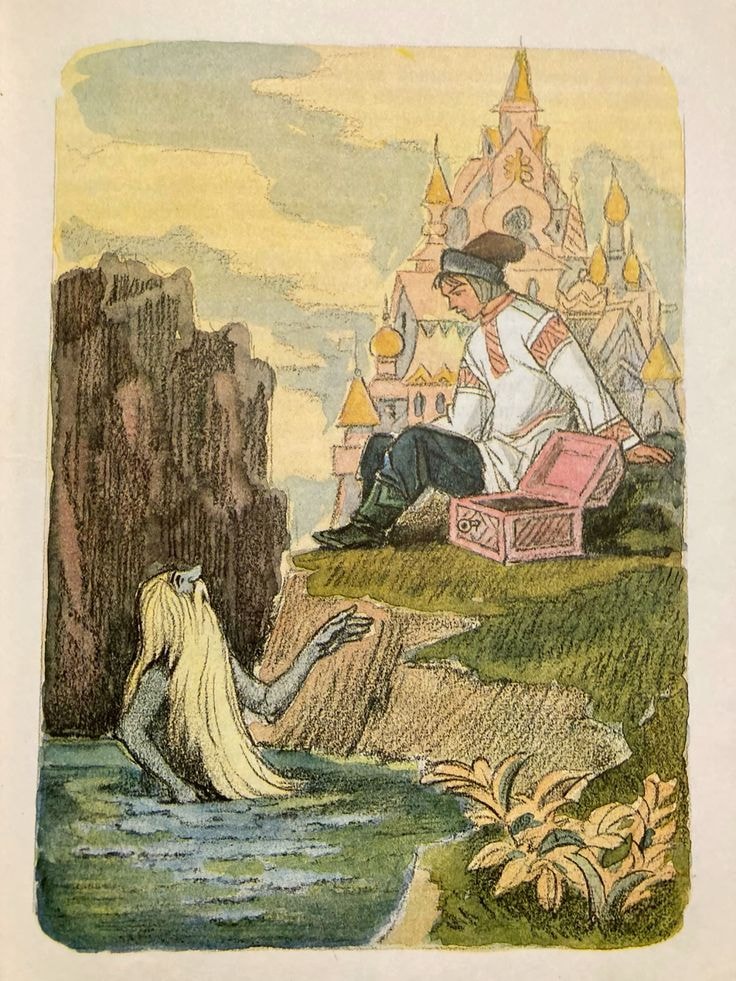 "Царь Салтан" в "кудрявых", стилизованных иллюстрациях Зотова, меня они завораживали, хотя в детстве я решительно предпочитала соцреализм в живописи, почему и не полюбила Митурича к Маршаку (опять-таки оценила позже):