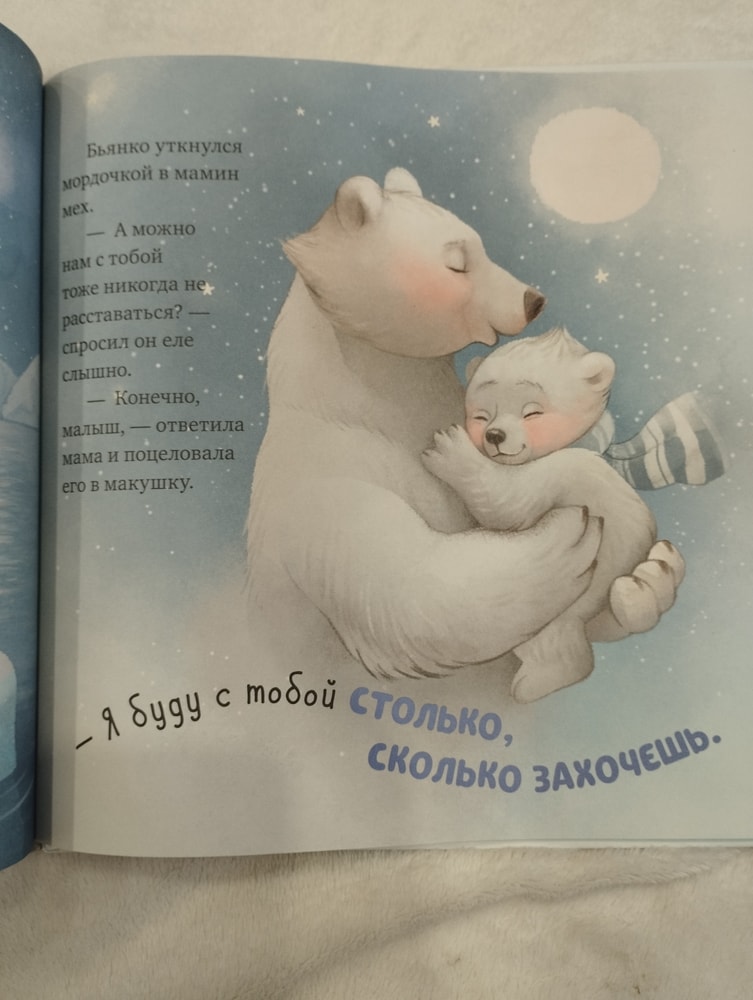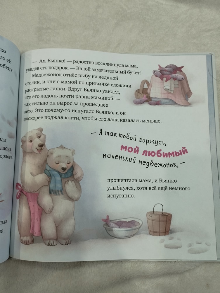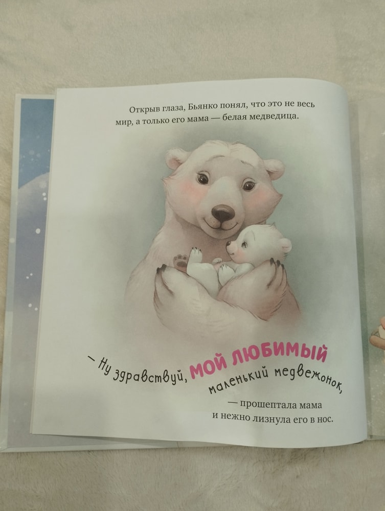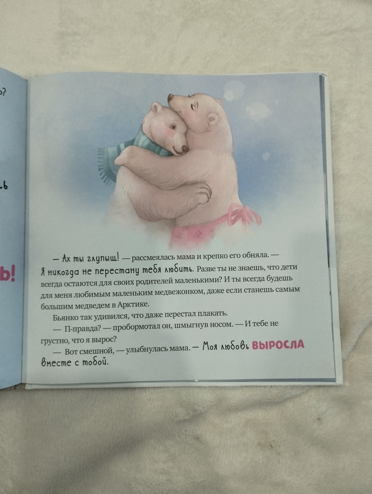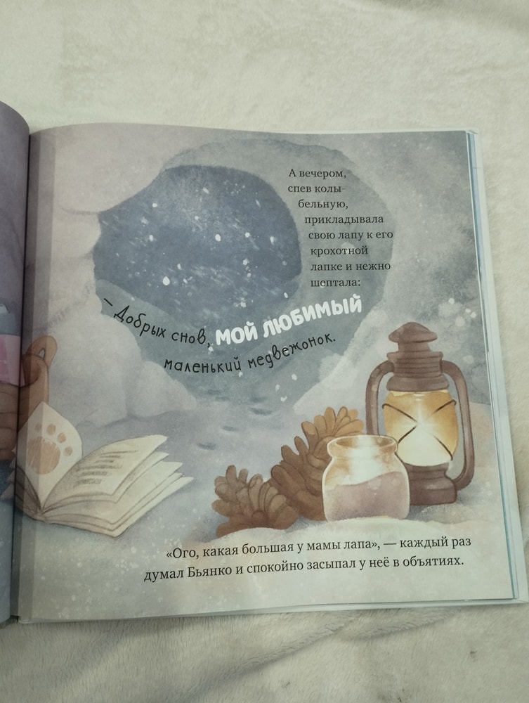 Текста не много, но каждое предложение наполнено смыслом и любовью, а главное понятное детям. Мы пока ещё маленькие, но уверена сынке она тоже полюбила, когда подрастёт. Яркие картинки на всю страницу заслуживают отдельного внимания.