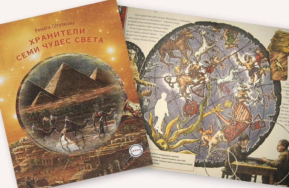 Снова перечитывал «Хранителей семи чудес света». Шестеро друзей ищут хранителя мудрости древних цивилизаций. Их путь начинается с расследования убийства египтолога рядом со статуей Сфинкса. В книге очень красивые картинки и вообще оформление, но не очень удобный шрифт.