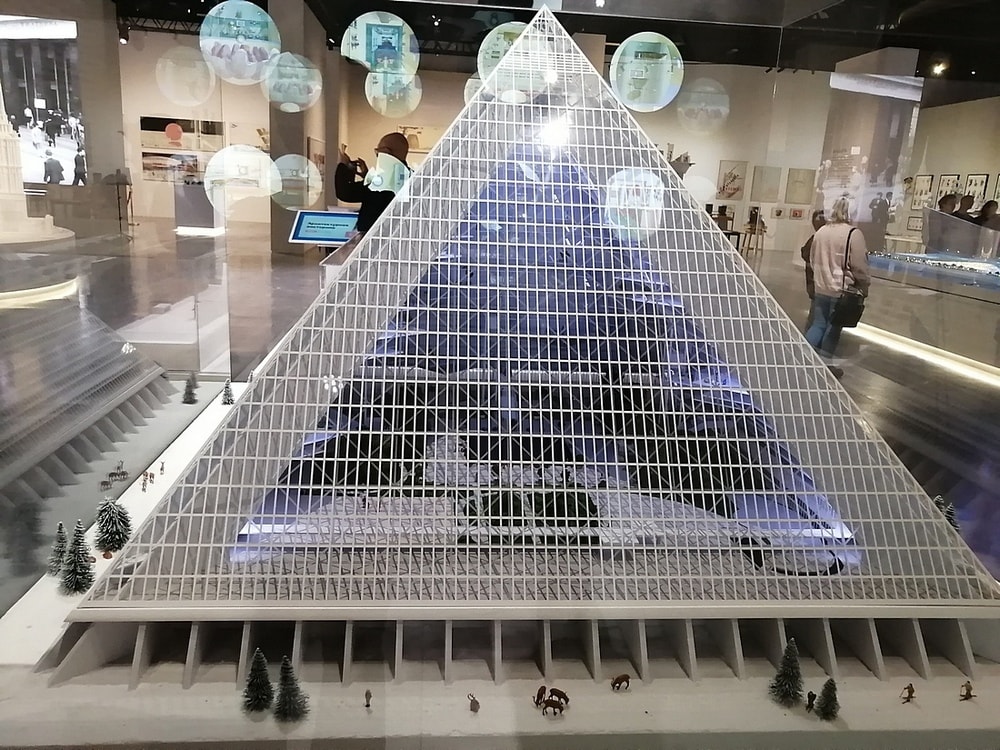 А вот эти пирамидальные и колизейные комплексы – не что иное, как проекты жилых комплексов для Крайнего Севера. Внутри и жилье, и магазины, и сфера бытового обслуживания…