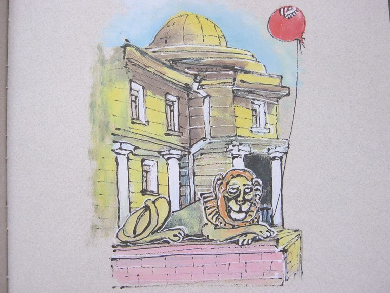 Каменные львы из книги Биссета "Забытый день рождения".