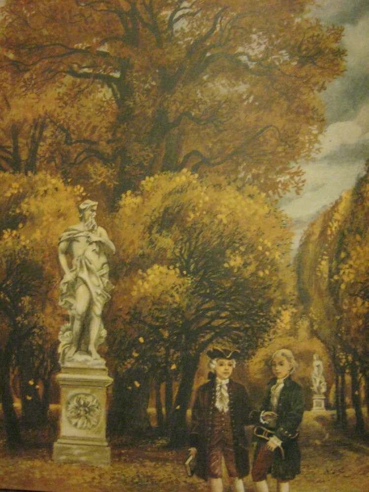 Статуи в парках дворянских усадеб. Мальчик на переднем плане - Саша Пушкин. Художник И.Пчелко.