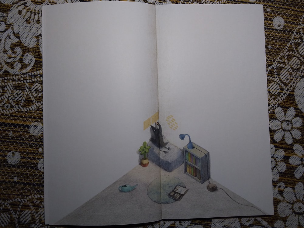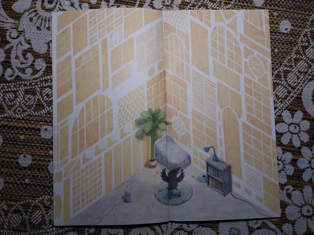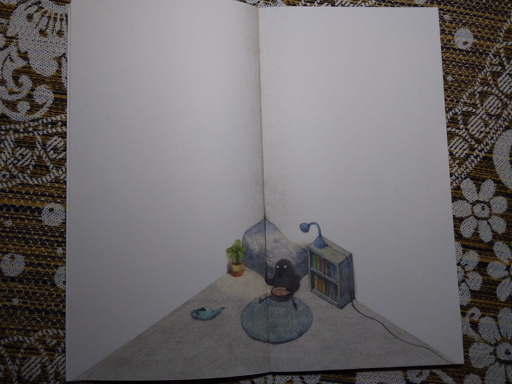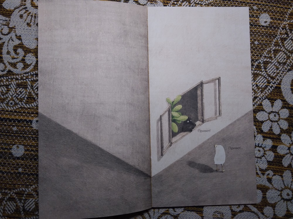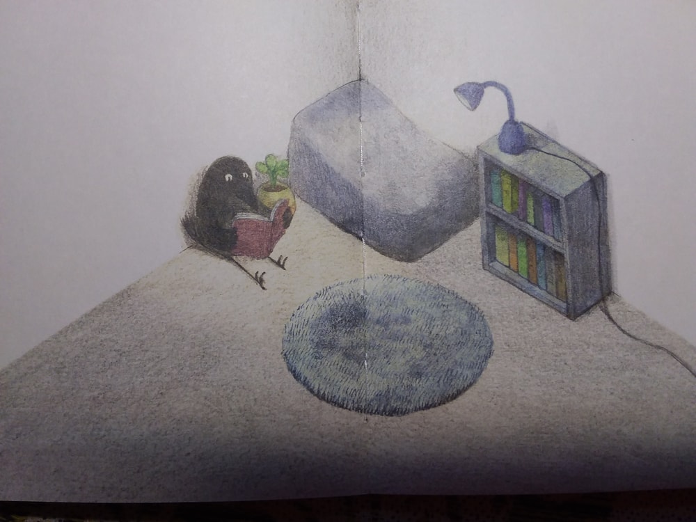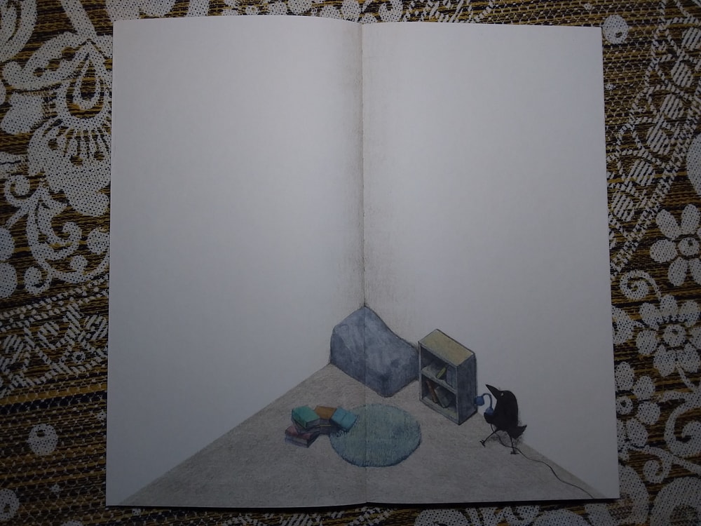 Действительно, ничего там особо нет. Книжка-картинка почти без слов, как ворон обживается в своём уголке, а мне от неё улыбаться хочется ). Начну с конца
