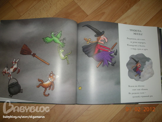 Верхом на помеле - зря ты ругаешь ритм и рифму:) у Матвейки одна из любимейших книг:)). там главное поймать ритм и потом как по маслу (первый раз я наверное тоже спотыкалась после привычного груффало). но у нас мож из любви к нечисти эта книга также пользуется популярностью. и вот сколько раз читаем (наизусть малые знают), столько раз и останавливаемся вечно в финале поглазеть/порасуждать - какие удобства на метле:))
