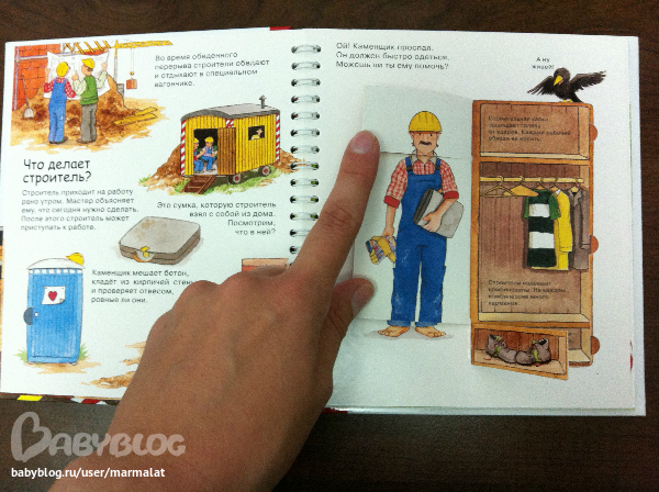 Книга "Строители" - поедет с нами в отпуск! удобный дорожный формат, картонные страницы, крепление пружина. С окошками , перекидными элементами - думаю Тиму понравится! Ну и технологический процесс строительства заодно разберем.