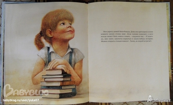Сегодня в Ашане вцепилась в эту книжку и не смогла положить обратно. Взяла из-за иллюстраций, они волшебные)))) История простенькая, о том как можно и нужно искать "книгу в книге", о том что нужно фантазировать, и что оказывается это очень легко и просто. С Аделиной за вечер уже 2 раза читали.
