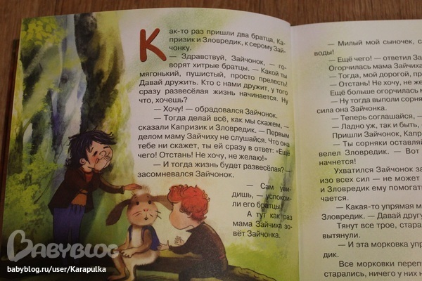 Наряду с тем, что Андрюшка с удовольствием уже слушает книги про Робина Гуда, Маугли, Золотой ключик и др.длинные произведения, которые иногда читаем по несколько дней, вот такие маленькие детские сказки тоже просит, и мне кажется, это по большому счёту оттого, что находит в них отражение некоторых своих вредностей)))))))))))))