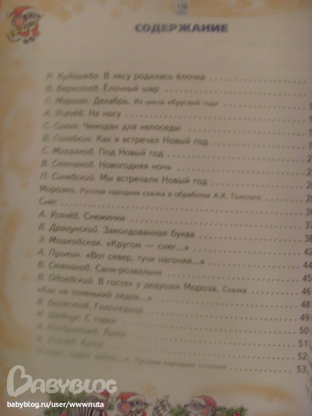 Этот сборник заказала со скидкой на Озоне со статусом "под заказ", и пока ждала успела даже купить другой сборник (, о нем я писала в предыдущем посте своем), вдруг этого не окажется в наличии, но все обошлось. Книжечка у меня. Хорошо, что по содержанию они почти не пересекаются, да и художники разные. Новогодний хоровод оформлен одним художником, а у этой книжки их несколько. Еще понравилось наличие классики в содержании. ТОже ждет своего часа (убрала пока все новогодние книжки, так как весь декабрь у меня адвент для дочки)))