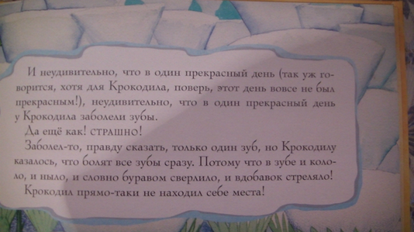 От трех до пятиВ детстве, как и все, смотрела этот мультфильм и конечно, когда вышла эта книжка очень мне ее захотелось, но не только по этому, понравилась идея доходчиво и понятно объяснить ребенку зачем нужно чистить зубы. Хотя в принципе у нас с этим нет проблем. В общем получили мы долгожданную книгу, сели с ребенком за чтение и...чем больше я ее перечитывала, тем чаще стала ловить себя на мысли "я ненавижу эту книгу, у меня нет никакого желания ее читать". Но, обо всем по порядку...
