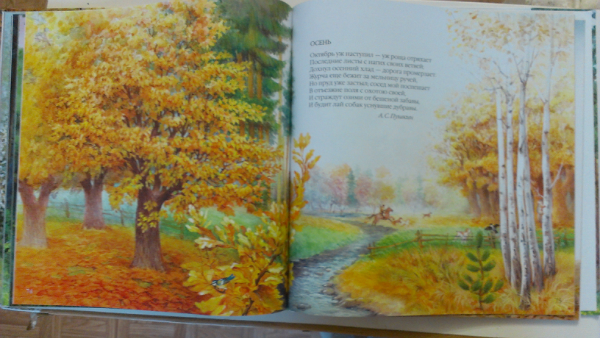я так давно хотела эту книгу и так рада была ее подержать в руках... иллюстрации просто божественны. каждая страница - просто произведение искусства... стихи - русская классика.. Пушкин, Фет и другие прекрасные поэты.