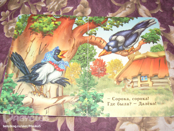 Не знаю чем уж Сорока полюбилась дочке - но полубилась! Картинки компьтерные однотипные. Но дочка прям фанатеет от книжки) При этом пальчиковую игру не оч любит(